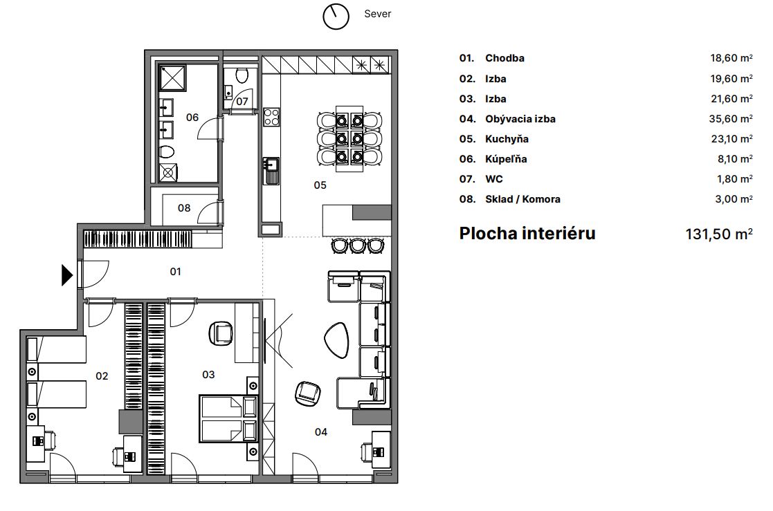 Celková plocha interiéru: 131,5 m²